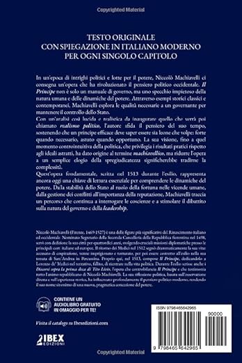 Proprio per questo motivo, oltre al saggio introduttivo di Giovanni Bresci che ne delinea le caratteristiche principali, ogni capitolo è dotato di una spiegazione completa in italiano moderno, al fine di rendere accessibile ogni singola informazione contenuta in questa opera che non può mancare nelle librerie di politici, manager, comunicatori, o semplici lettori interessati alla storia d’Italia e del pensiero occidentale moderno.