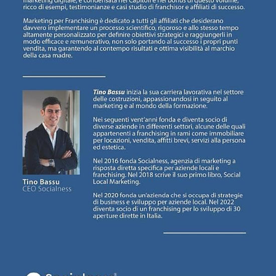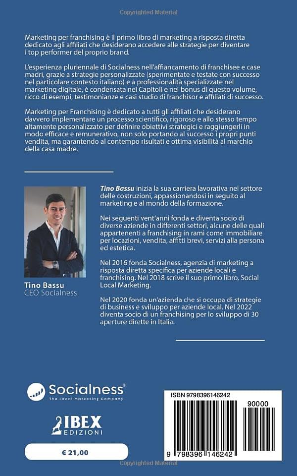 L'esperienza pluriennale di Socialness® nell'affiancamento di franchisee e case madri, grazie a strategie personalizzate (sperimentate e testate con successo nel particolare contesto italiano) e a professionalità specializzate nel marketing digitale, è condensata nei Capitoli e nei bonus di questo volume, ricco di esempi, testimonianze e casi studio di franchisor e affiliati di successo.